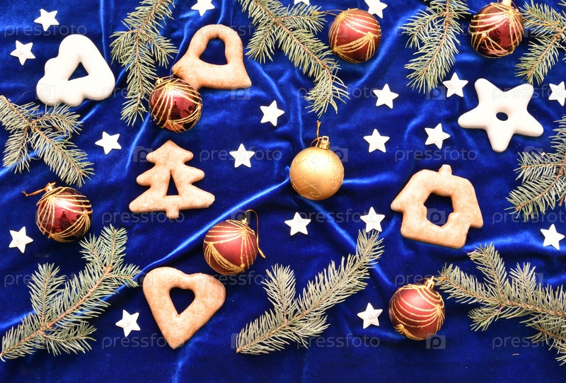 Рождественские пряники, ветки голубой ели