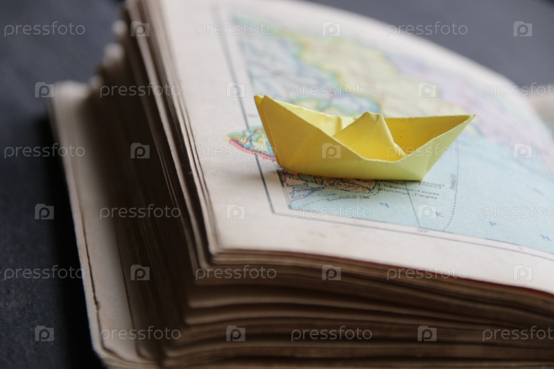 Бумажная лодка на винтажной карте