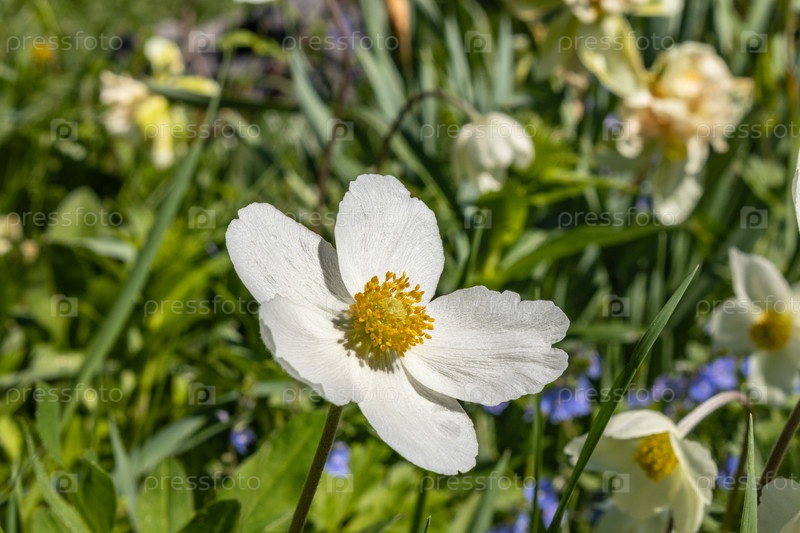 На клумбе на участке зацвела ветреница сильвестрис. Один из первых весенних цветов