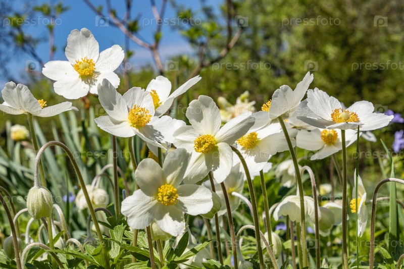 На клумбе на участке зацвела ветреница сильвестрис. Один из первых весенних цветов