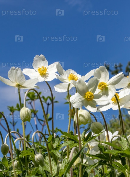 На клумбе на участке зацвела ветреница сильвестрис. Один из первых весенних цветов