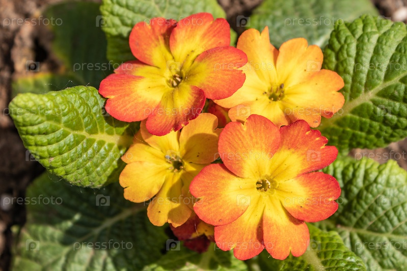 Primula vulgaris, первоцвет, цветок ранней весны. макрос вид сверху крупным планом