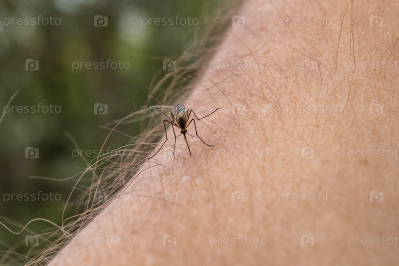 Один комар садится на руку, прокалывает кожу и сосет человеческую кровь. Вызывает заболевание малярия. Комары опасные переносчики болезней