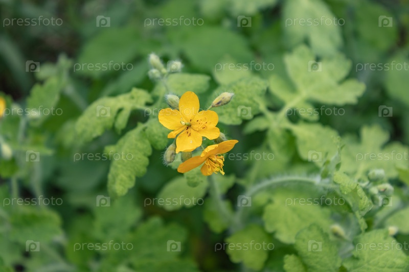 Chelidonium majus, чиститель большой, пустынник. желтые цветы в крупном плане