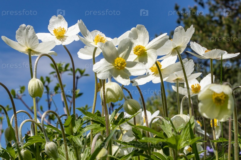 На клумбе на участке зацвела ветреница сильвестрис. Один из первых весенних цветов