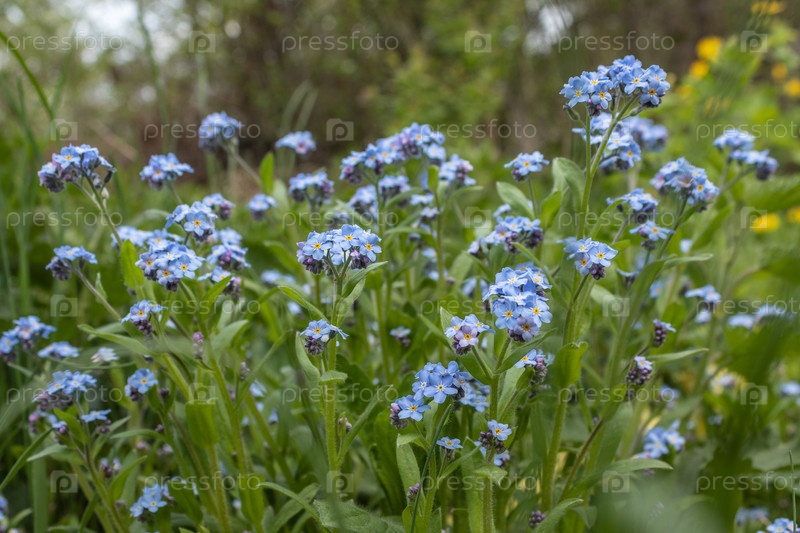 Голубые памятники, Myosotis sylvatica, трава скорпиона, цветок на весенней лужайке