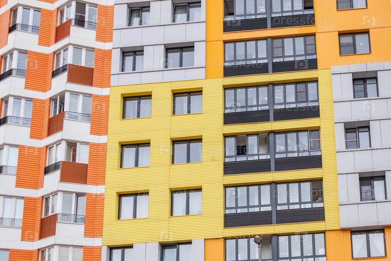 Красивые фасады современного жилого дома. Жилой комплекс В лесу, Москва, Россия