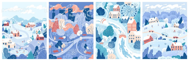 Зимний сезон Ландшафт городского пейзажа улицы города зимы