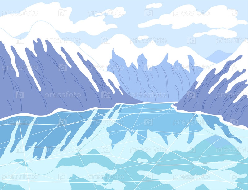 Зимний горный пейзаж с замерзшим озером