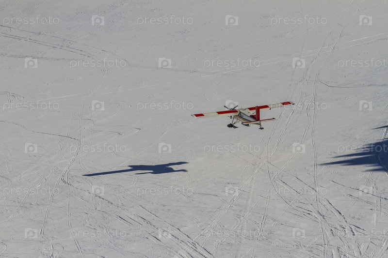 Маленький самолет над снежным полем