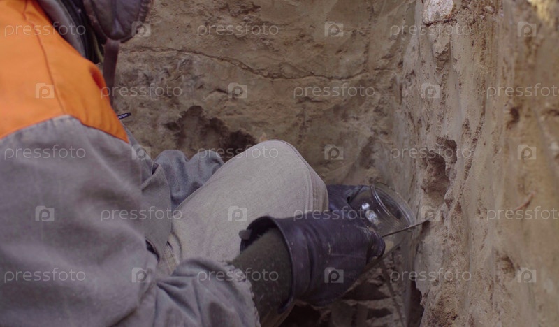 Ученый получает образцы почвы