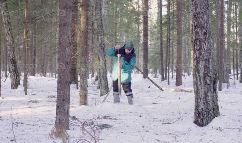 Эколог получает образцы снега