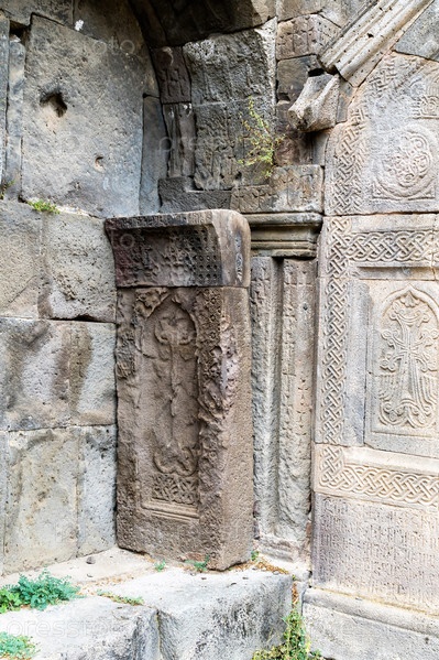 Армения, Татев, сентябрь 2022 г. Древний хачкар у стены главного храма