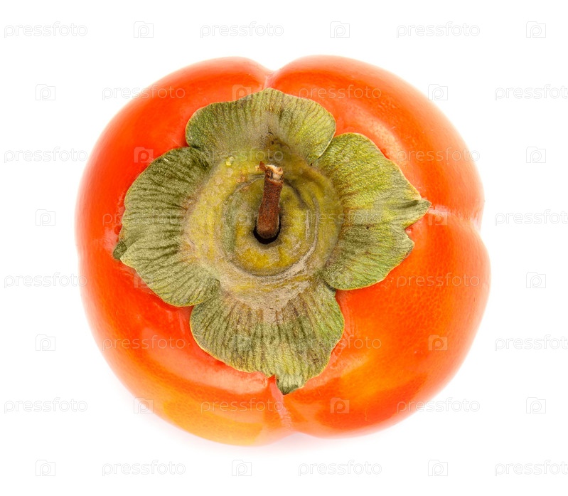 Спелая хурма изолирована на белом фоне. Вид сверху