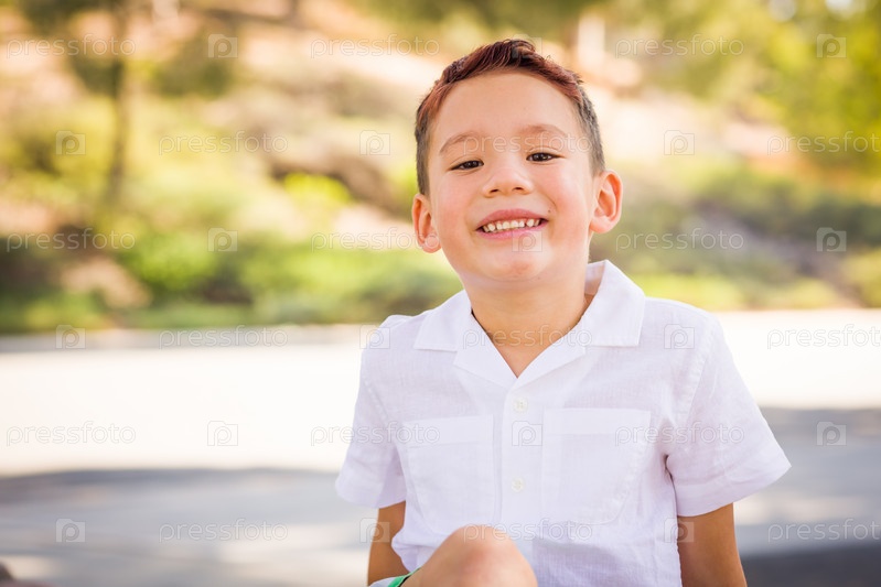 Уличный портрет двухрасового китайско-кавказского мальчика