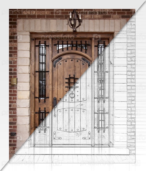 До и после чертежа входной двери таможни до готовой конструкции