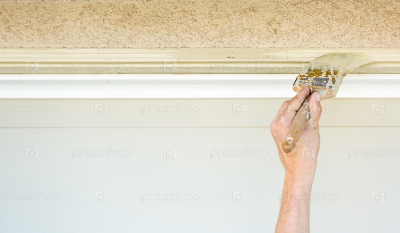 Профессиональный художник режет кистью, чтобы покрасить дверную раму гаража
