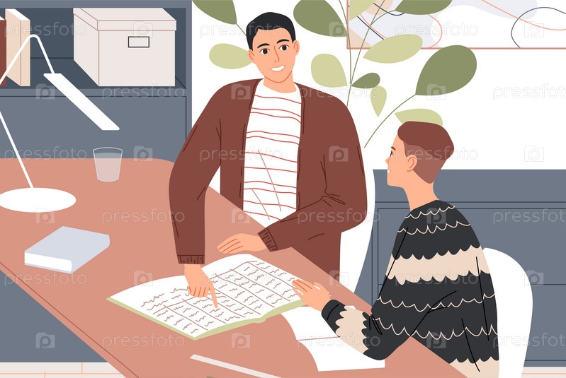 Учитель и ученик сидят за столом. Индивидуальное занятие