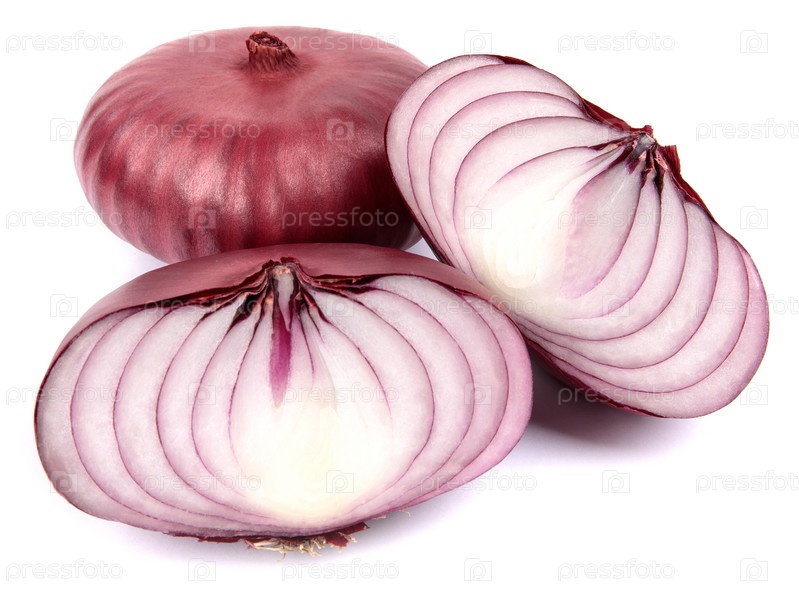Две половинки и целая луковица красного лука изолированы на белом фоне