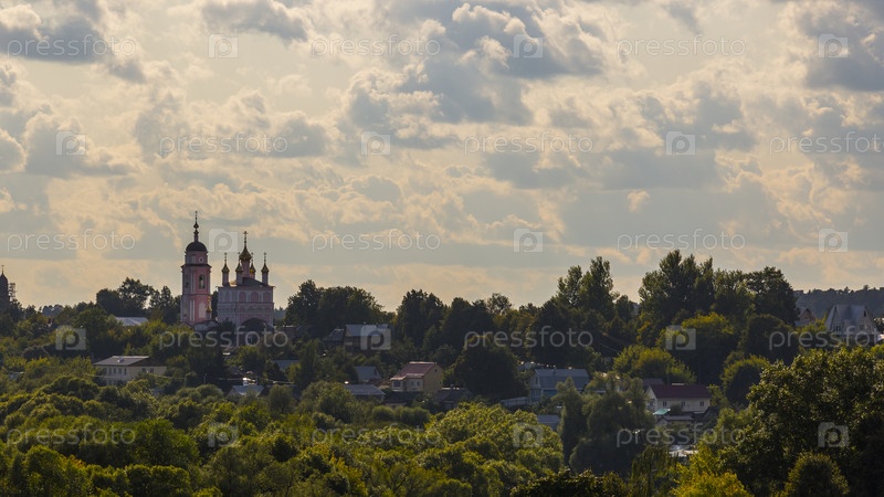 Православная церковь у реки, русский город Боровск