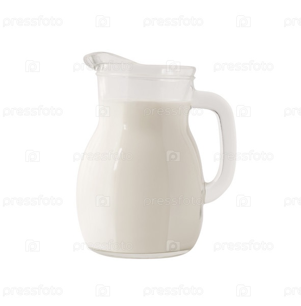 Вид сбоку молока в прозрачной стеклянной банке на белом фоне