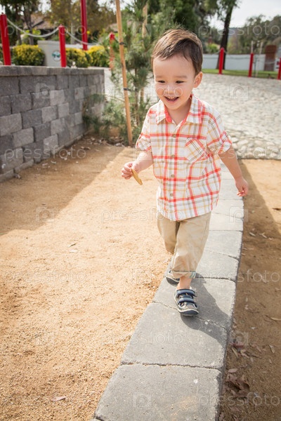 Молодой китайский и европейский мальчик развлекается в парке