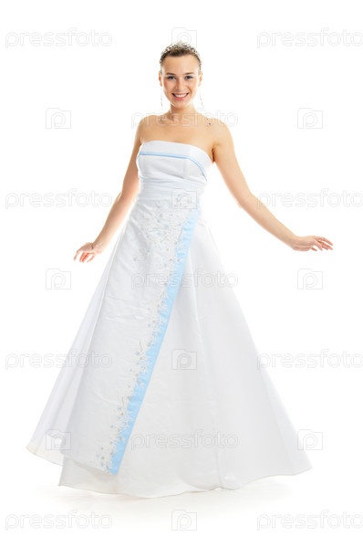 Красивая девушка в белом платье на белом фоне