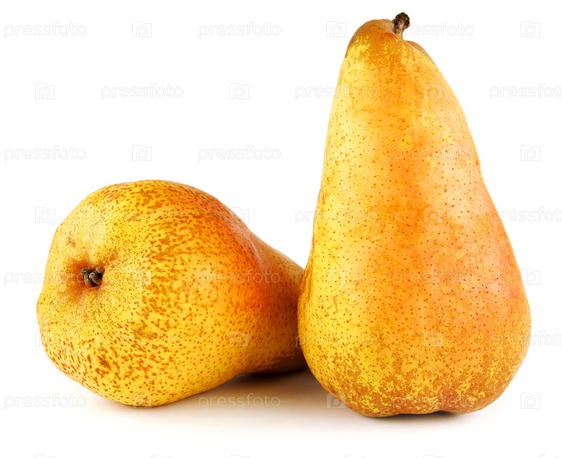 Две желтые спелые груши на белом фоне