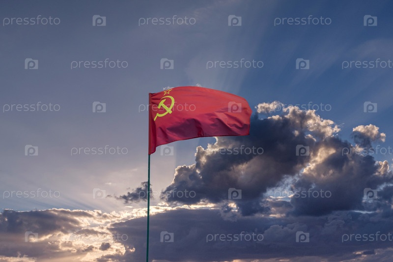 CCCP СССР Флаг Советского Союза развевается в драматическом облачном небе