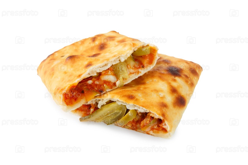Фотография еды вегетарианского пирога с сыром, грибами, свежим перцем и оливками