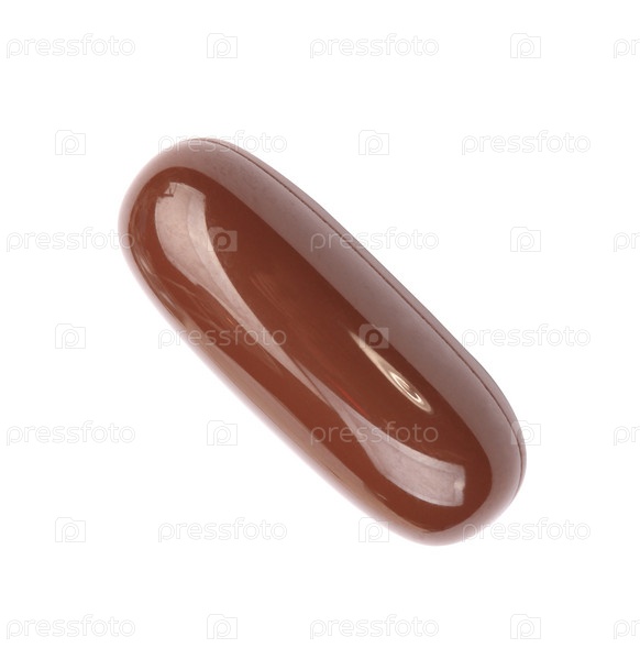 Одна коричневая желатиновая таблетка, выделенная на белом фоне