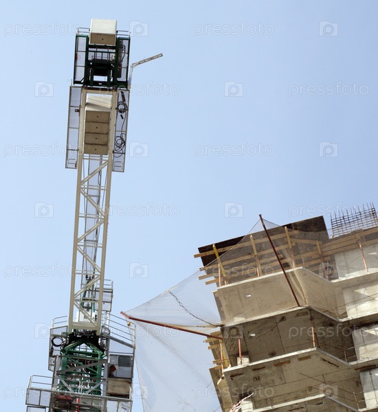 Дом развивается с краном днем