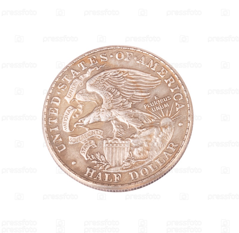 Монета в полдоллара на белом фоне