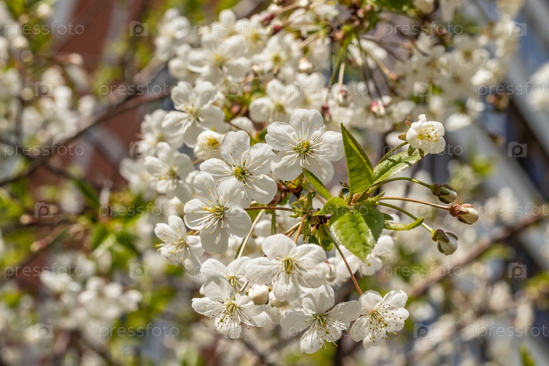 Ветки цветущего дерева. Вишневое дерево в белых цветах. весенний солнечный день