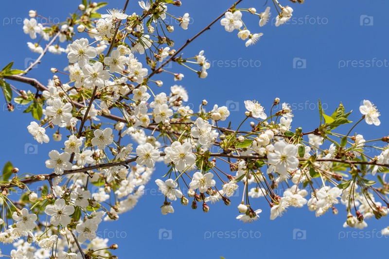 Ветки цветущего дерева. Вишневое дерево в белых цветах. весенний солнечный день