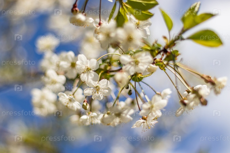 Ветки цветущего дерева. Вишневое дерево в белых цветах. весенний солнечный день. крупным планом