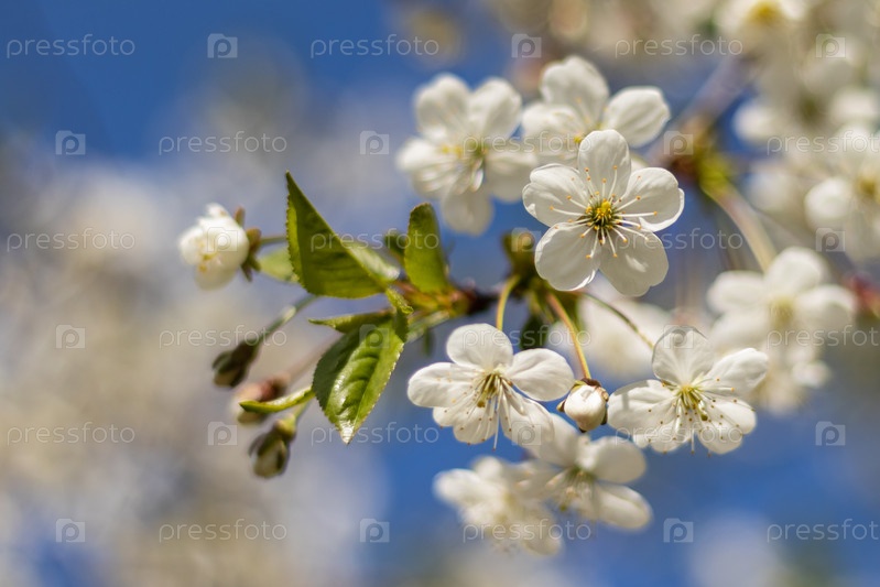 Ветки цветущего дерева. Вишневое дерево в белых цветах. весенний солнечный день. крупным планом