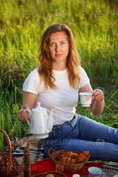 Молодая женщина в парке на пикнике