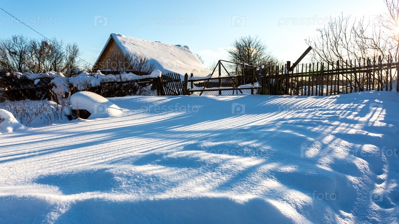 Улица в традиционной русской деревне в снежную морозную зиму