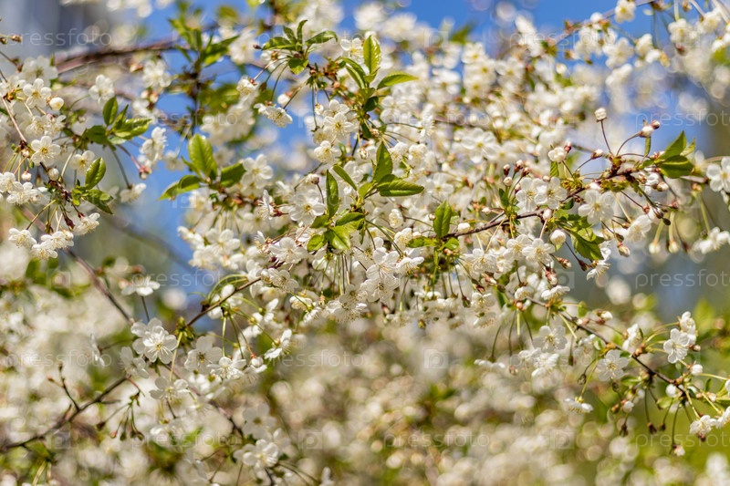 Ветки цветущего дерева. Вишневое дерево в белых цветах. весенний солнечный день