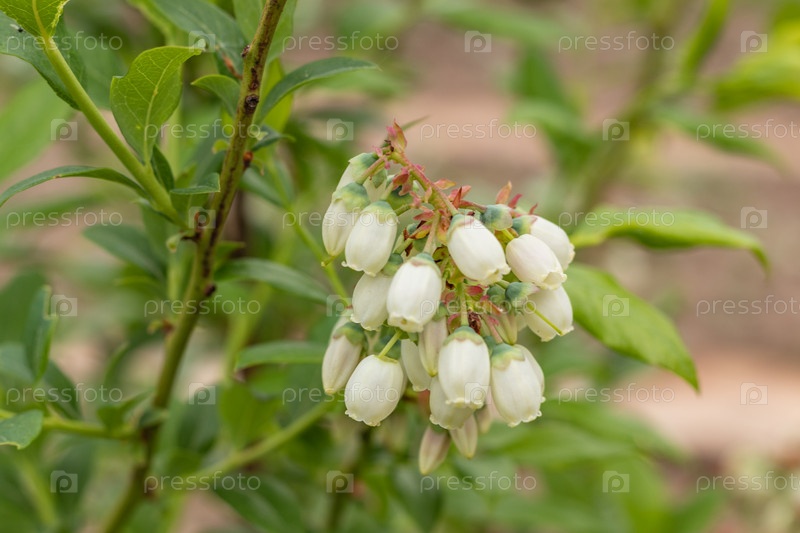Голубика европейская кустарниковая Vaccinium uliginosum цветет в саду в мае.Молодые кусты с цветами ранней весной