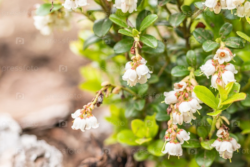 Цветущие белые колокольчики, клюква, весенний пейзаж. крупным планом
