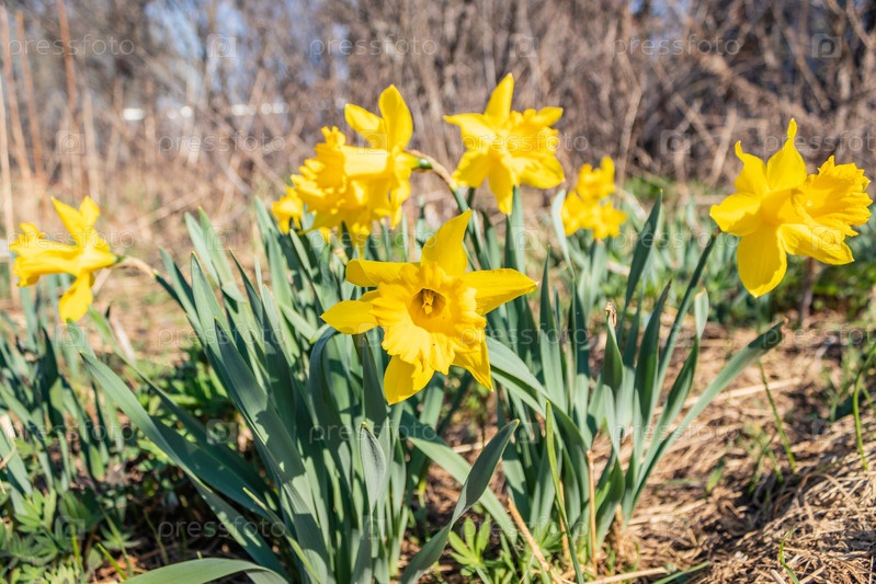 Нарцисс цветок весенний солнечный день. Цветы и зеленые листья в качестве фона. Идеальное изображение для весеннего фона, цветочного пейзажа. нарцисс фон