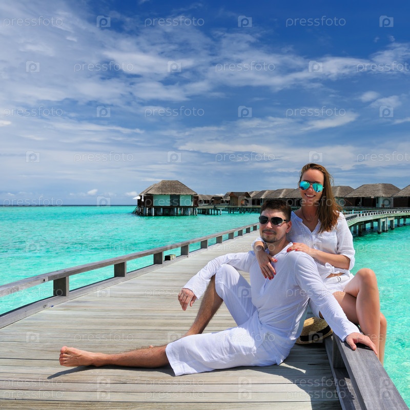 Пара на пристани на Мальдивах