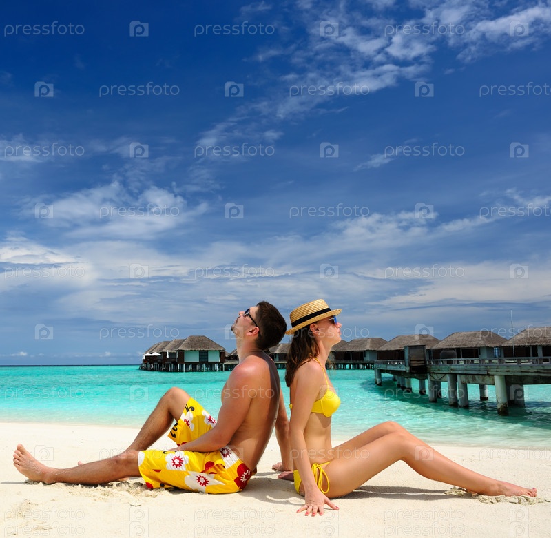 Пара на пляже на Мальдивах