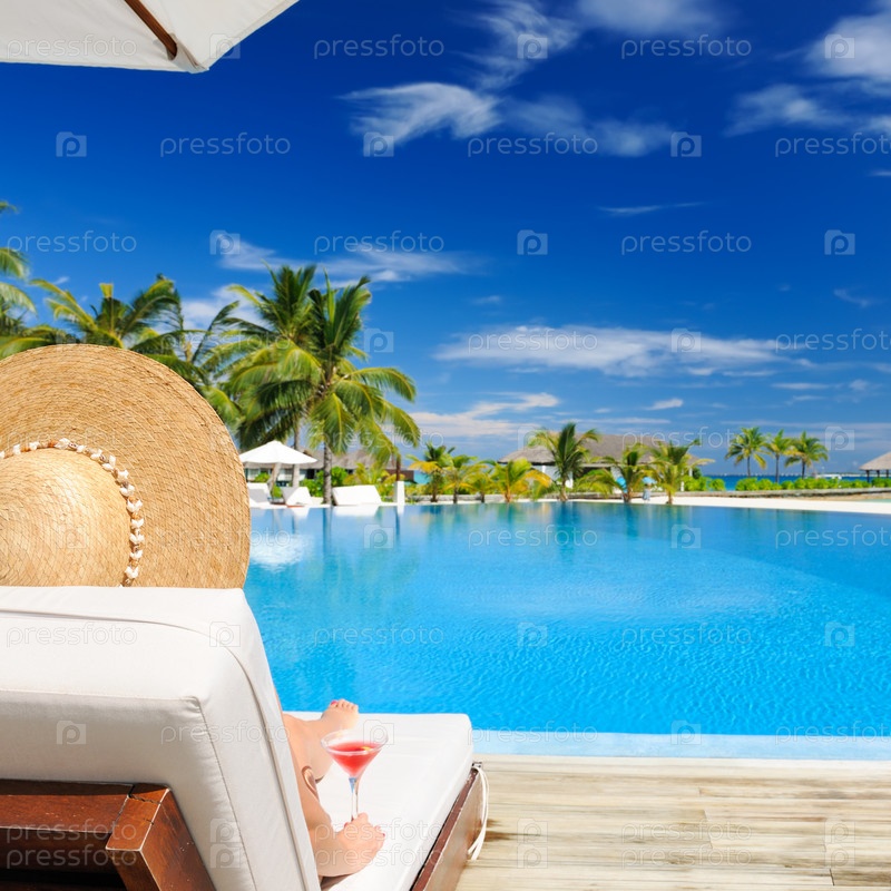 Женщина с коктейлем космополитен у бассейна
