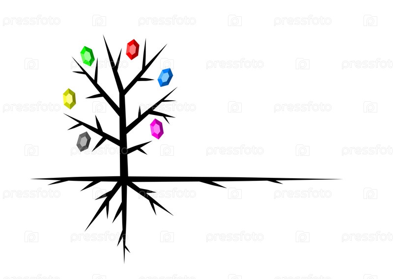 Символ стилизованного дерева с корнями и драгоценными камнями