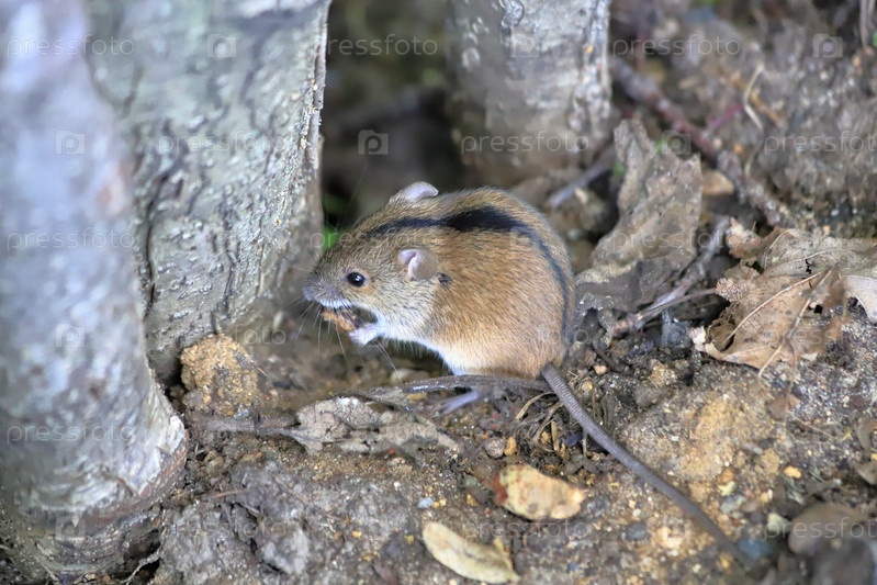 Мышь полевка жует яблоко