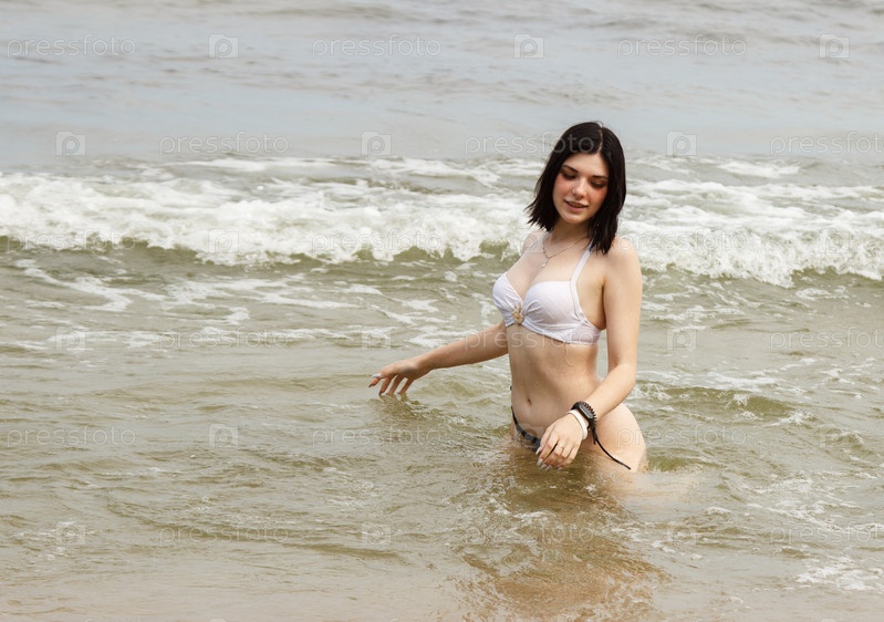 Молодая женщина плавает в море