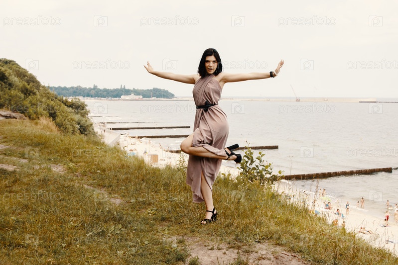 Молодая женщина стоит у моря